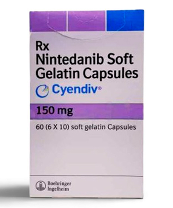 - Το νιτεντανίμπ χρησιμοποιείται για τη θεραπεία της ιδιοπαθούς πνευμονικής ίνωσης και άλλων φλεγμονωδών πνευμονικών παθήσεων. Ο μηχανισμός δράσης του είναι αναστολή των πρωτεϊνικών κινάσων.
